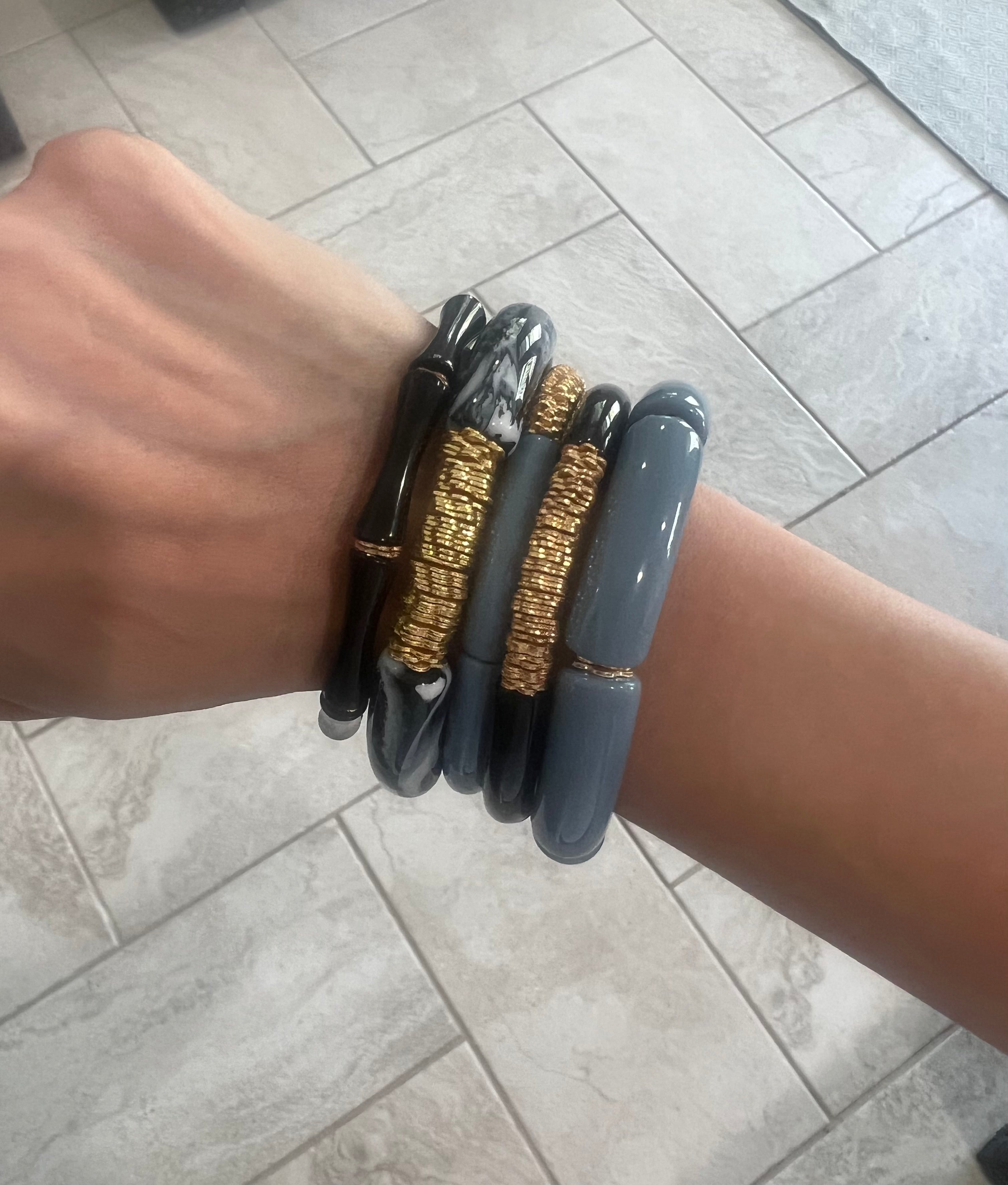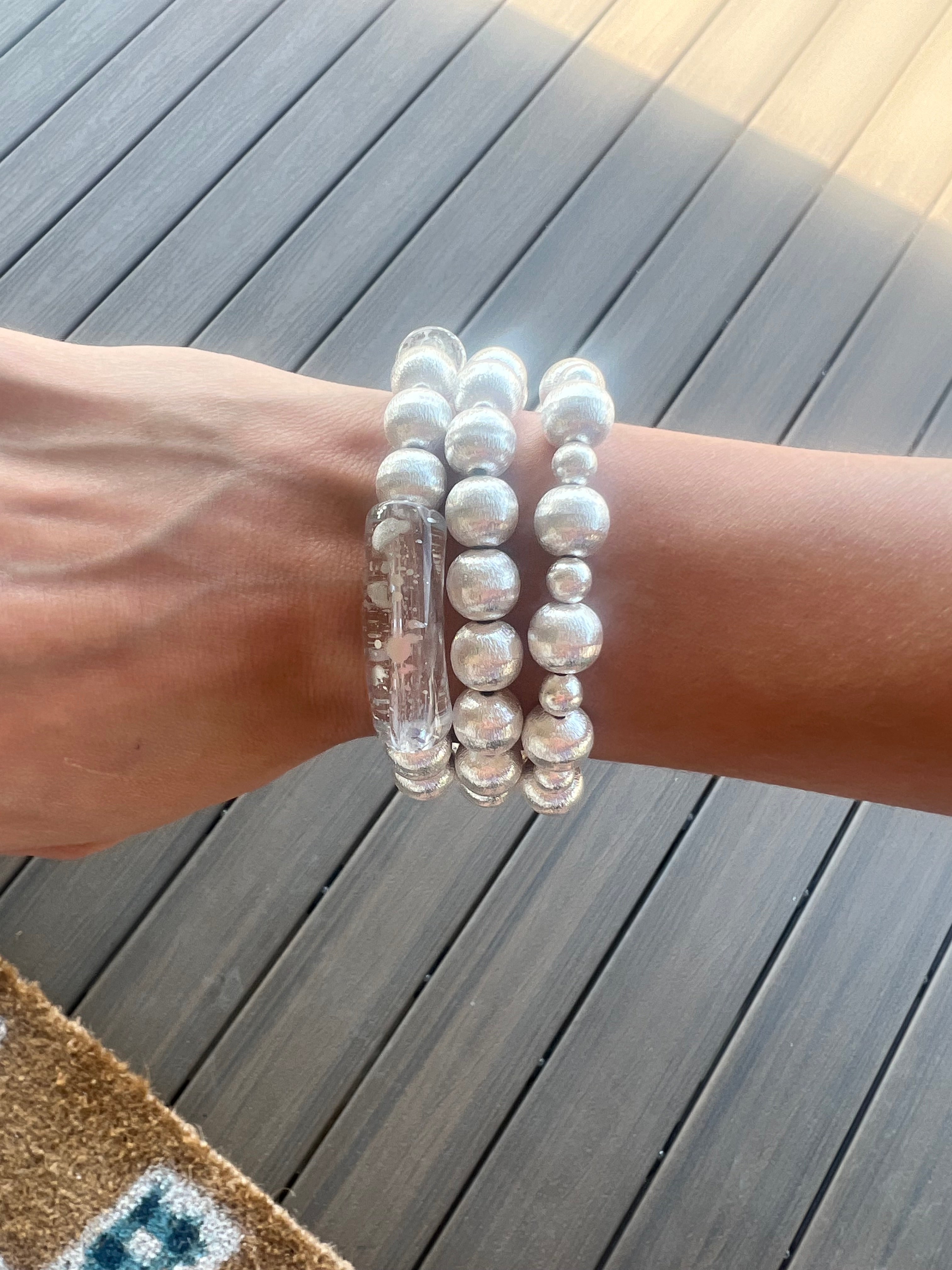 Gold Nugget, Crystal, and Coin Set of Three Stretch Bracelet