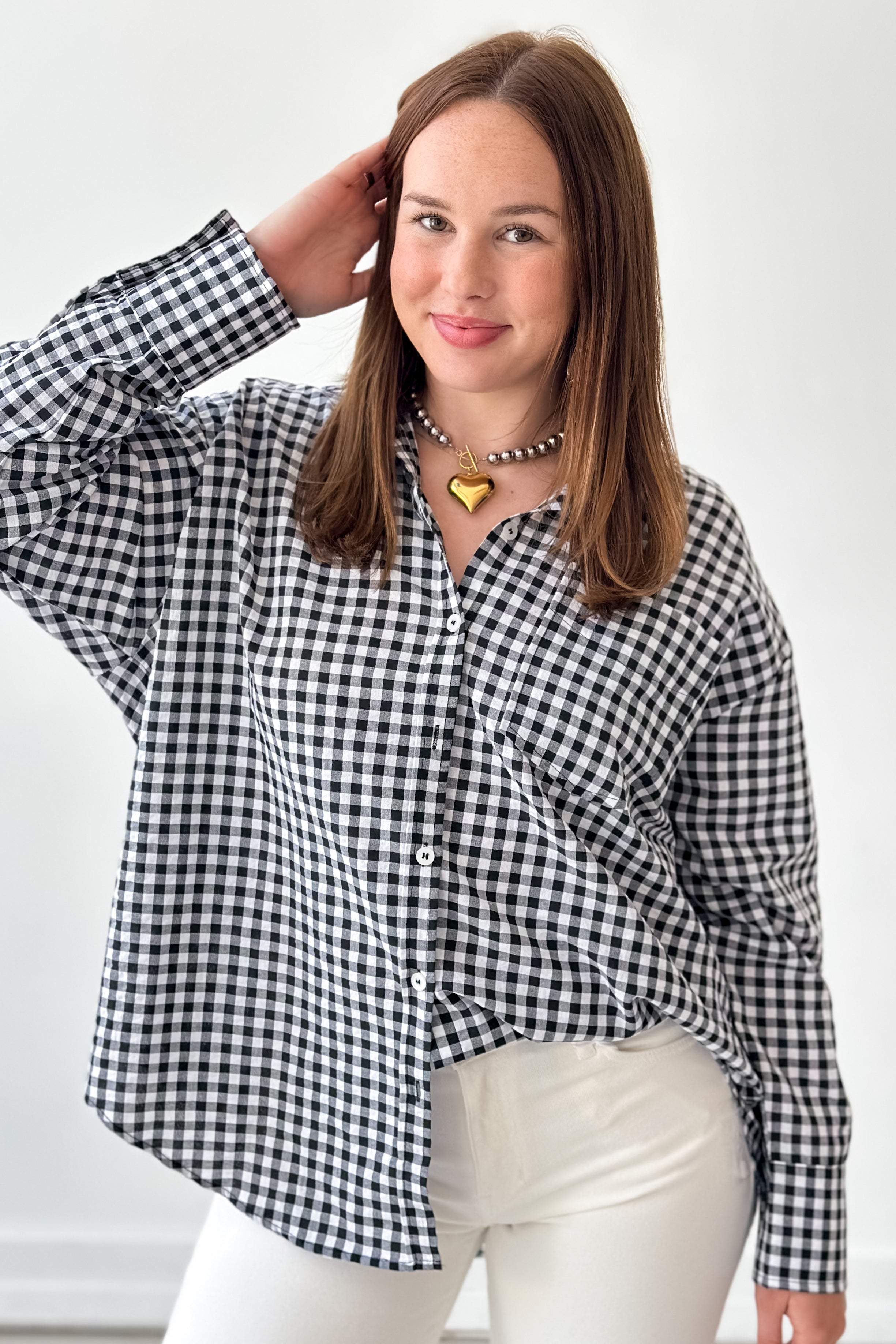 Wait For It Gingham Button Down Top