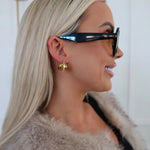 Perfection in a hoop is here! This wide round hoop with rhinestone strip is a love over and over again. These are for the girl who loves her hoops but just wants a different twist on.