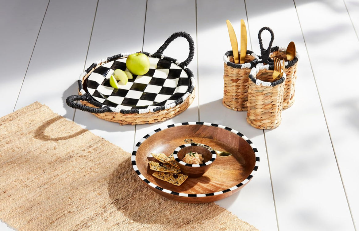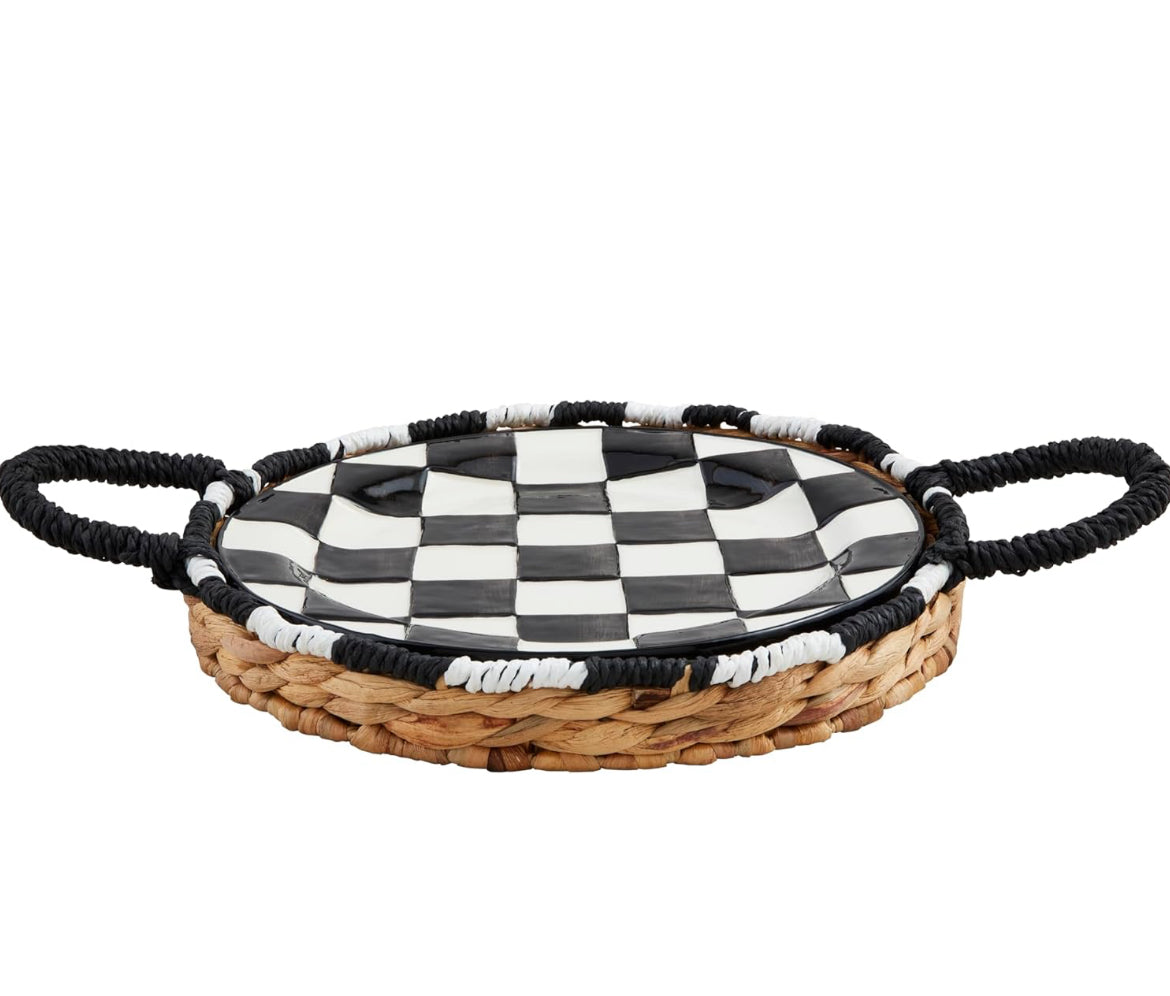 The Checkered Woven Platter Set is a charming addition to any dining experience, featuring a 2-piece ensemble that combines functionality with artistic flair. This set includes a hand-painted ceramic platter, showcasing intricate checkered patterns that add a touch of elegance to your table setting. Accompanying the platter is a beautifully crafted water hyacinth serving basket, providing a natural and rustic complement to the ceramic piece perfectly cradling the platter for easy transport and presentation. This set promises durability and a timeless aesthetic, making it an ideal choice for both casual gatherings and formal occasions.