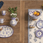 Elevate your table setting with this delightful cotton runner featuring hand-blocked floral designs from our Blue Willow collection. A playful way to infuse timeless charm and artistic flair into your dining experience.