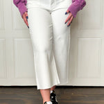 We all want a white Jean that can move with us, fit us in all the right places and a style that works all year round. These cropped wide-leg jeans feature small patch pockets, a double-button closure, and a raw hem for a relaxed yet polished look. A versatile piece that transitions seamlessly from casual days to elevated evenings.