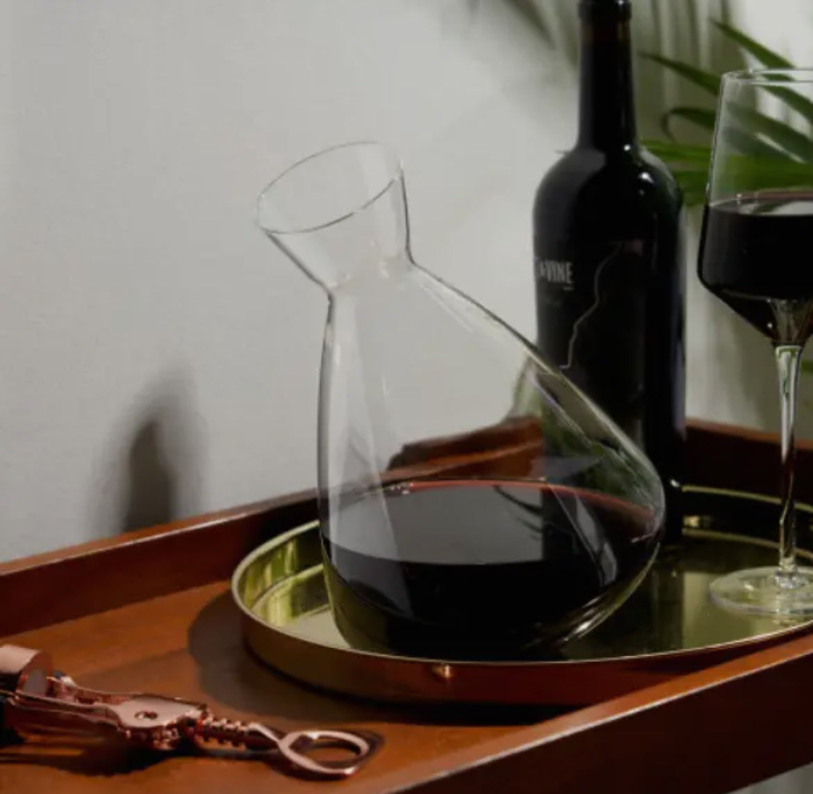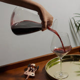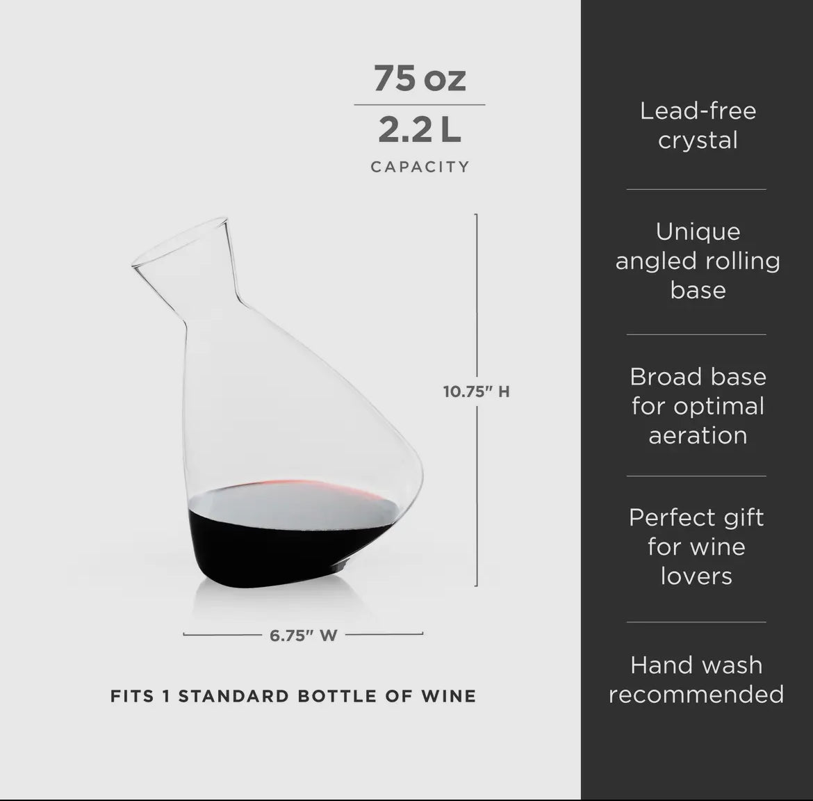 The delicate rounded body rotates in an arc around its convex base, triggering oxidation and allowing for the complex undertones of your chosen beverage to burgeon. A carefully designed modern statement piece, it sparks conversation anywhere you keep it.