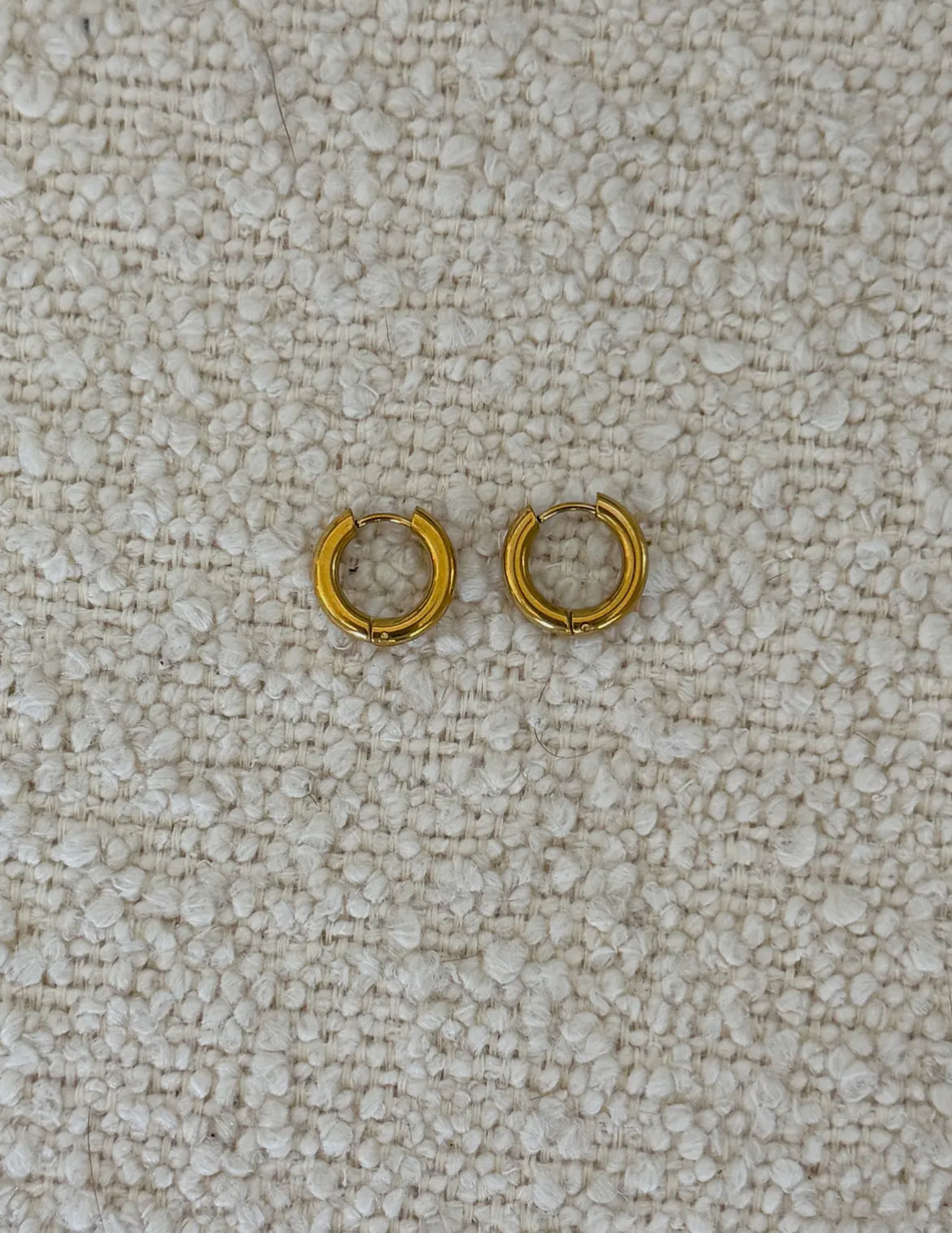 Accessorize with ease for an everyday look with our lightweight gold huggie hoop earrings. These gold juggies are water resistant and are the easy jewelry you can wear daily.