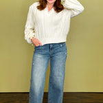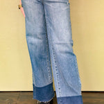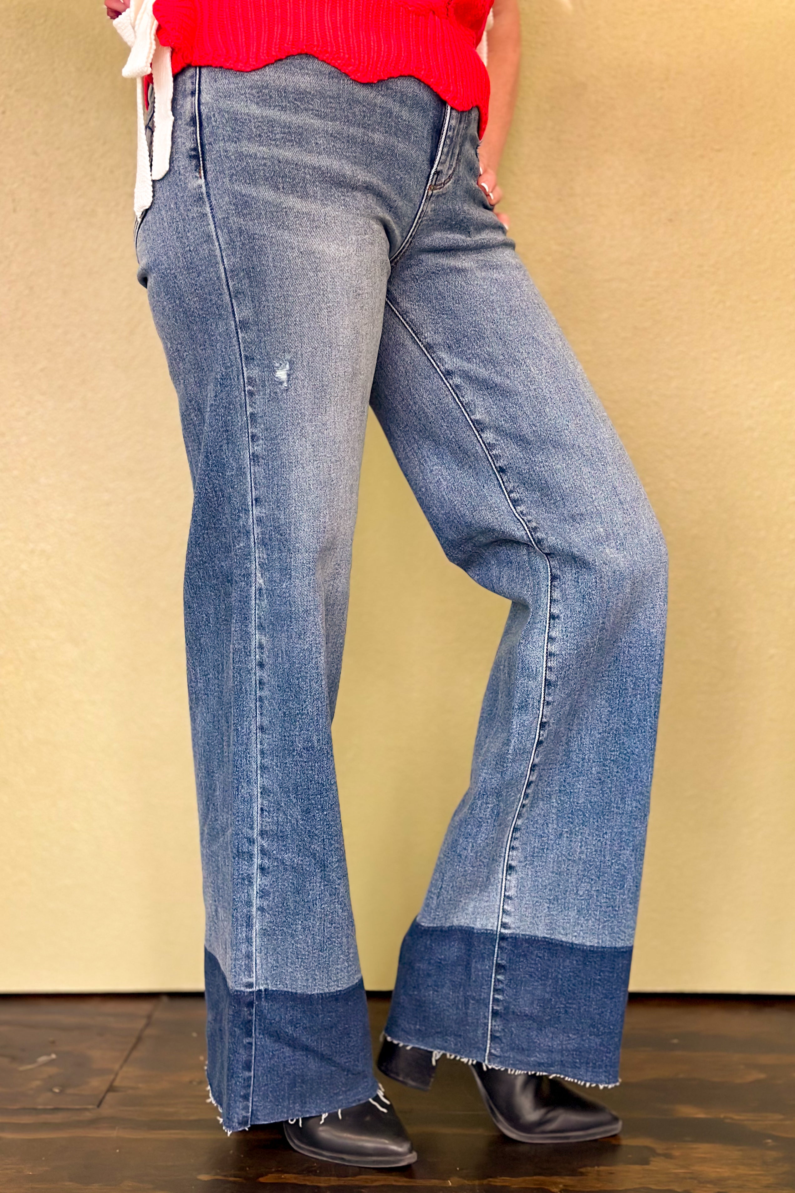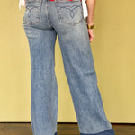 Bring one of the most glorious jeans to your wardrobe with this straight leg high rise jean. This mid wash denim with dark wash raw hem, has a western embroidered detail on the back pocket. The fit and style of this jean will make the rest of your outfit unforgettable.