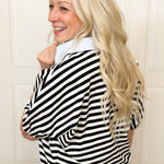 We can wear any stripe, any color and any style we want. We love fashions have changed and rules are falling away. This dolman 3/4 balloon sleeve stripe top with contrasting tunic inset can be worn casually worn whites or denim for holidays, or dress it up for work. The comfort with this sleeve and fit are what makes this style a Monarch favorite.