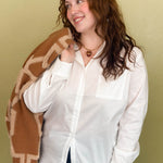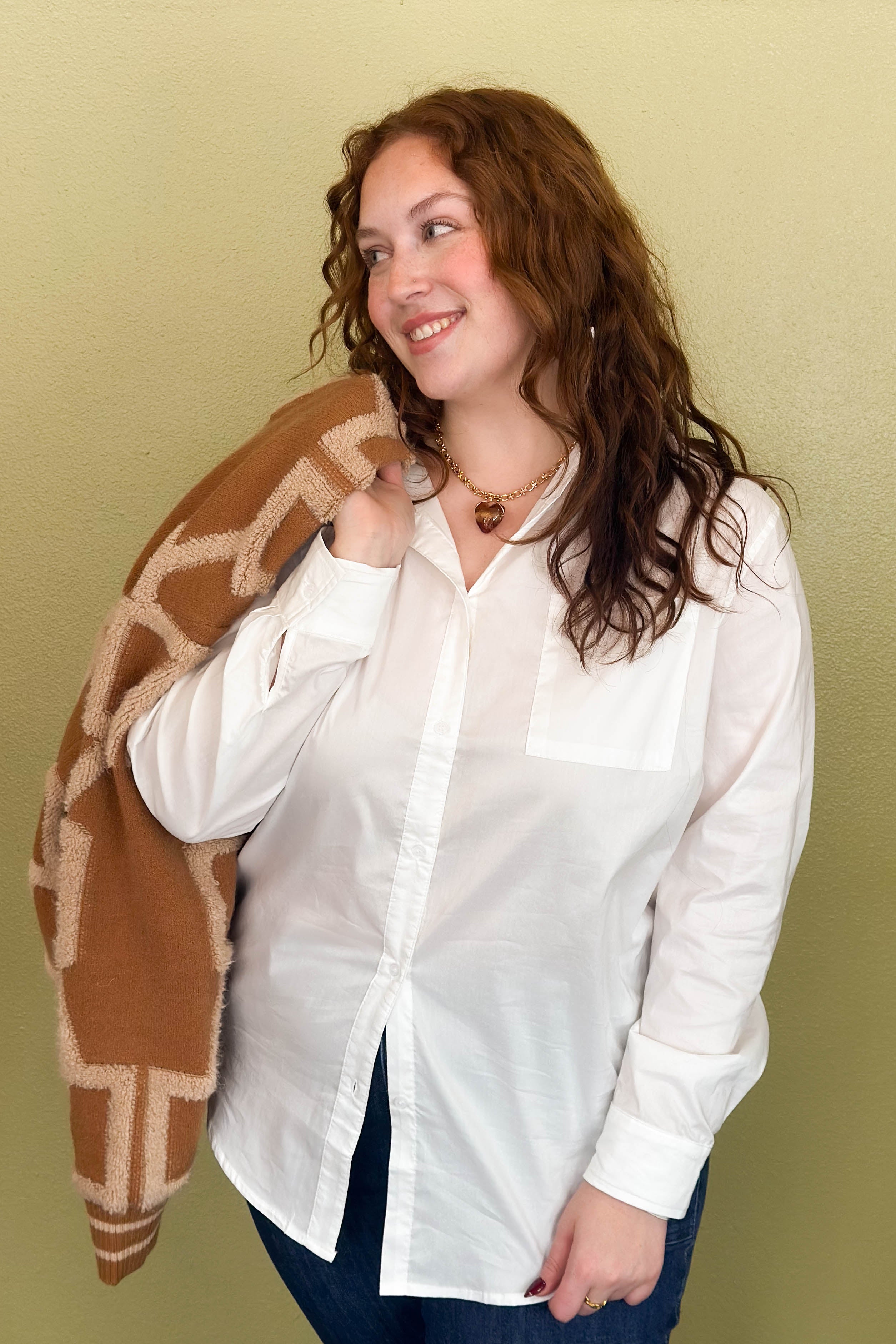 RESTOCK ALERT! Classic and versatile button-down top featured in a boxy & oversized silhouette with classic collar detail and a front pouch pocket. It's finished with a crisp fabric, making it the ideal choice for both formal occasions and everyday wear. The options to style a crisp white button down are endless so grab this bang and start styling.