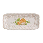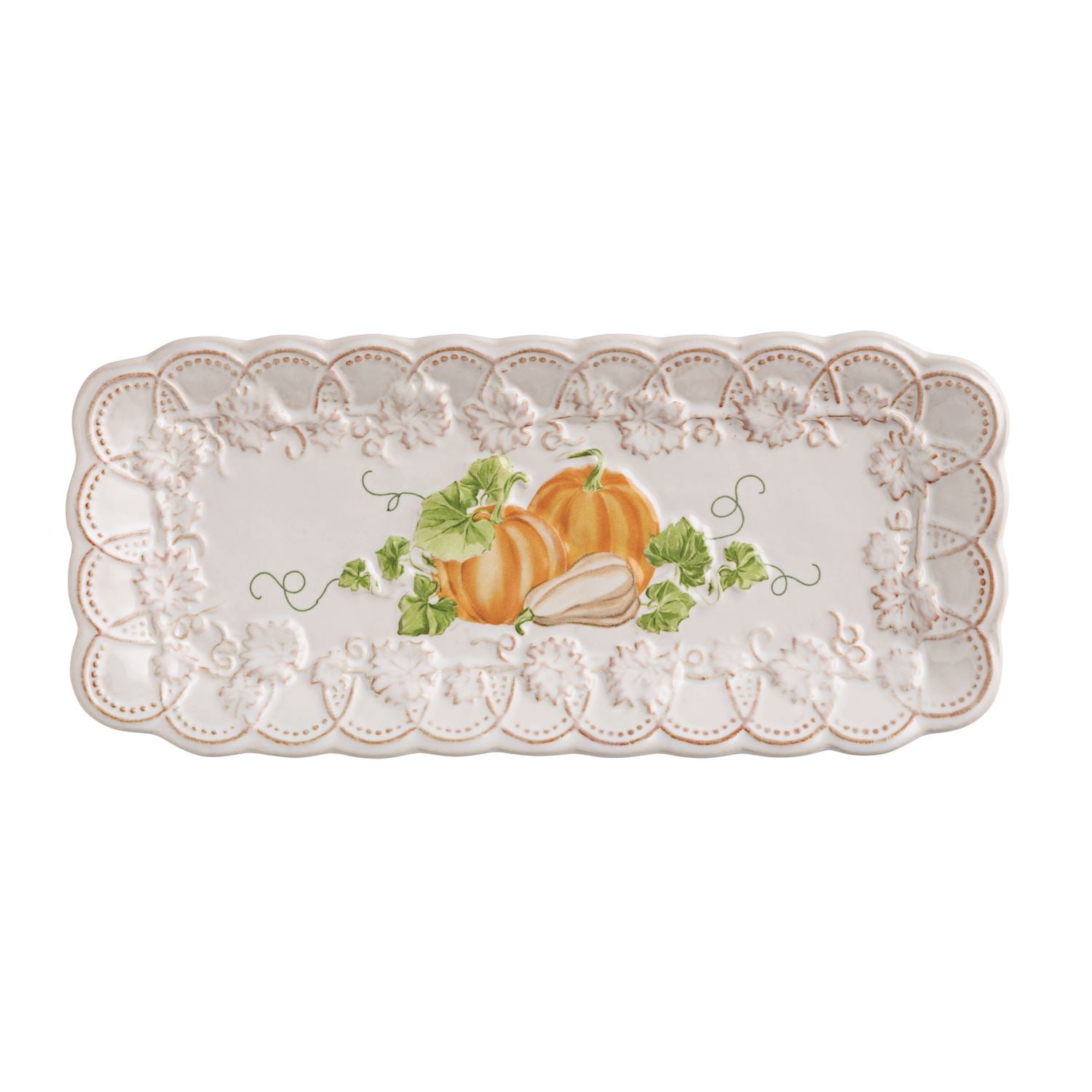 Thankful Everything Plate. This elegant stoneware tray features a beautifully scalloped edge, adding a touch of sophistication to any setting. It's the perfect size for serving appetizers, desserts, or as a decorative piece. Crafted from durable stoneware, it ensures long-lasting use and is ideal for both everyday dining and special occasions. Its versatile design complements any table décor, making it a must-have addition to your kitchen or dining room.