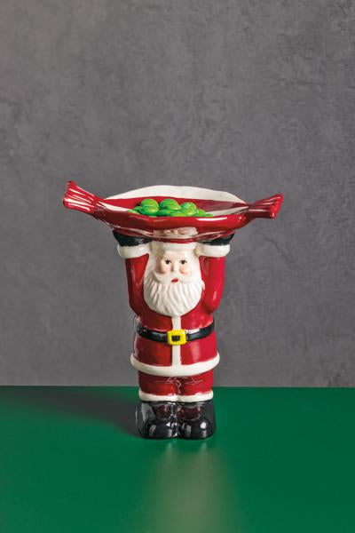 Delight your holiday guests with the charming Santa Candy Pedestal, a festive addition to your seasonal decor. This beautifully hand-painted stoneware piece features a jolly Santa Claus figure, expertly crafted to bring a touch of whimsy and cheer to your gatherings. The pedestal securely holds a peppermint-themed serving plate, perfect for displaying an array of holiday treats, candies, or appetizers. This versatile piece fits seamlessly into any table setting or mantel display. Durable and easy to clean, the Santa Candy Pedestal is a delightful way to celebrate the season and create lasting memories with family and friends.