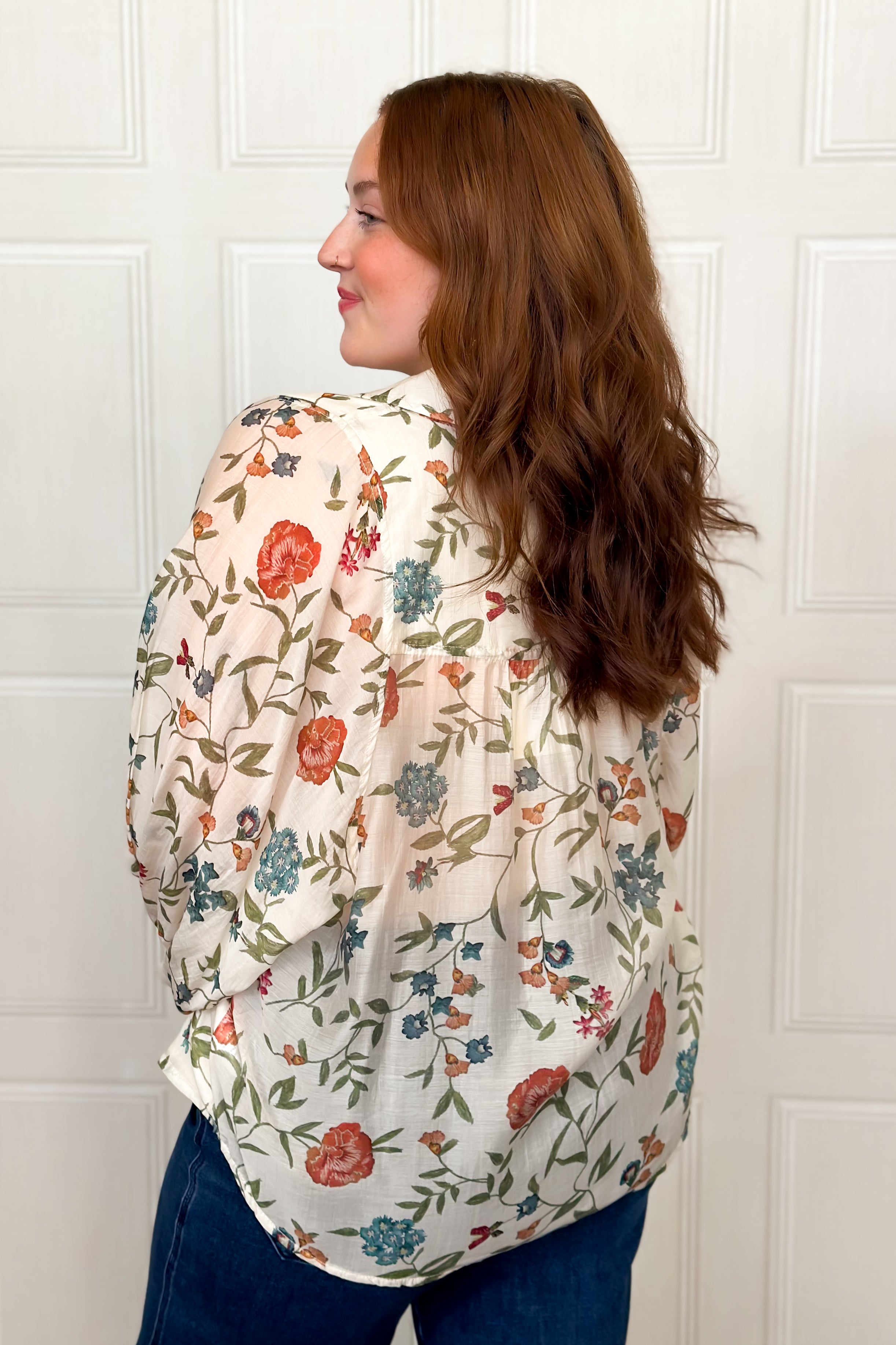 Spring brings fresh scents and beautiful florals that make us feel alive! The button down blouse with 3/4 balloon sleeve has a loose fit that makes it great for warmer days. With the soft floral pattern, it won't take much to find the bottom to coordinate.