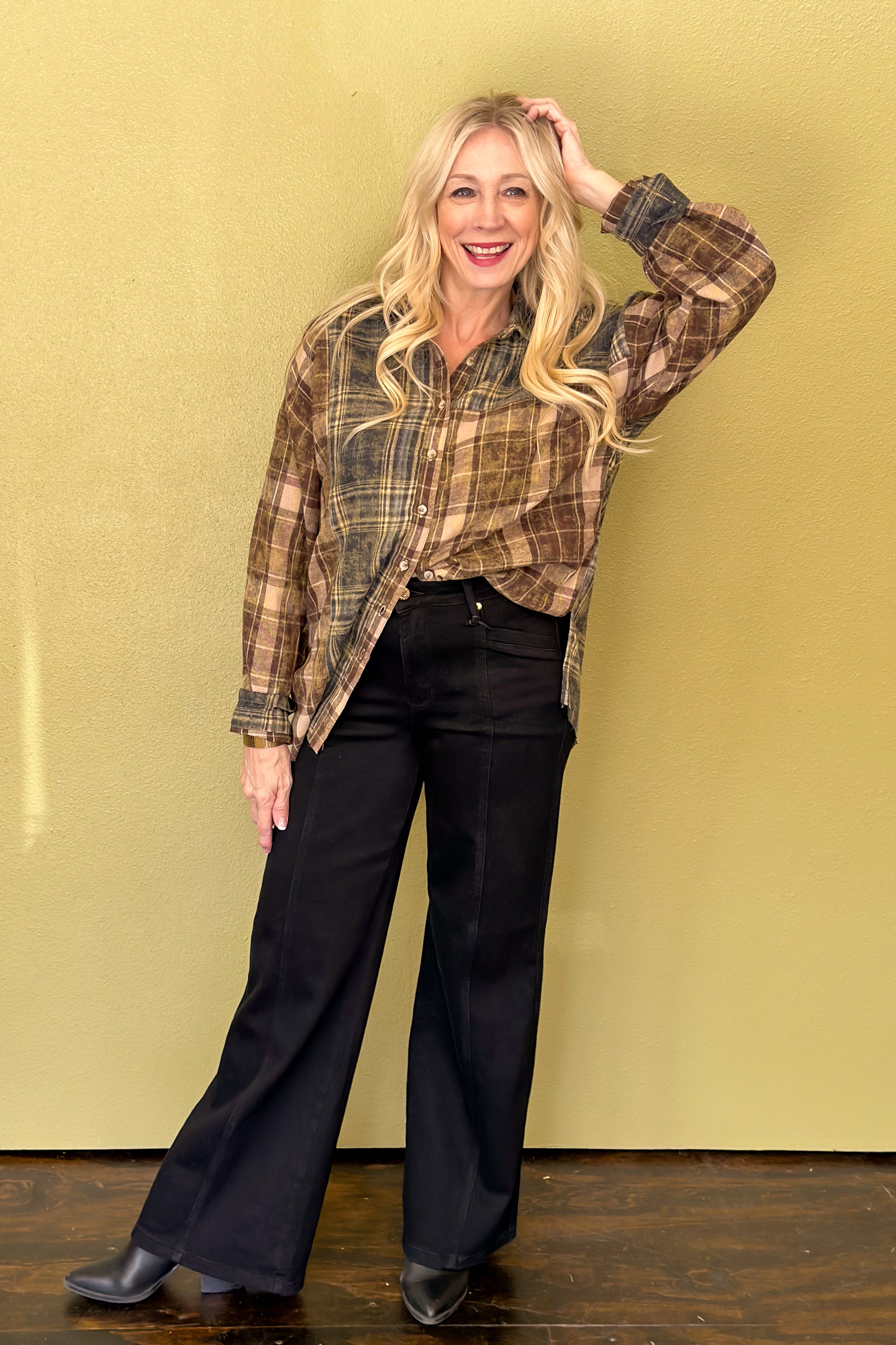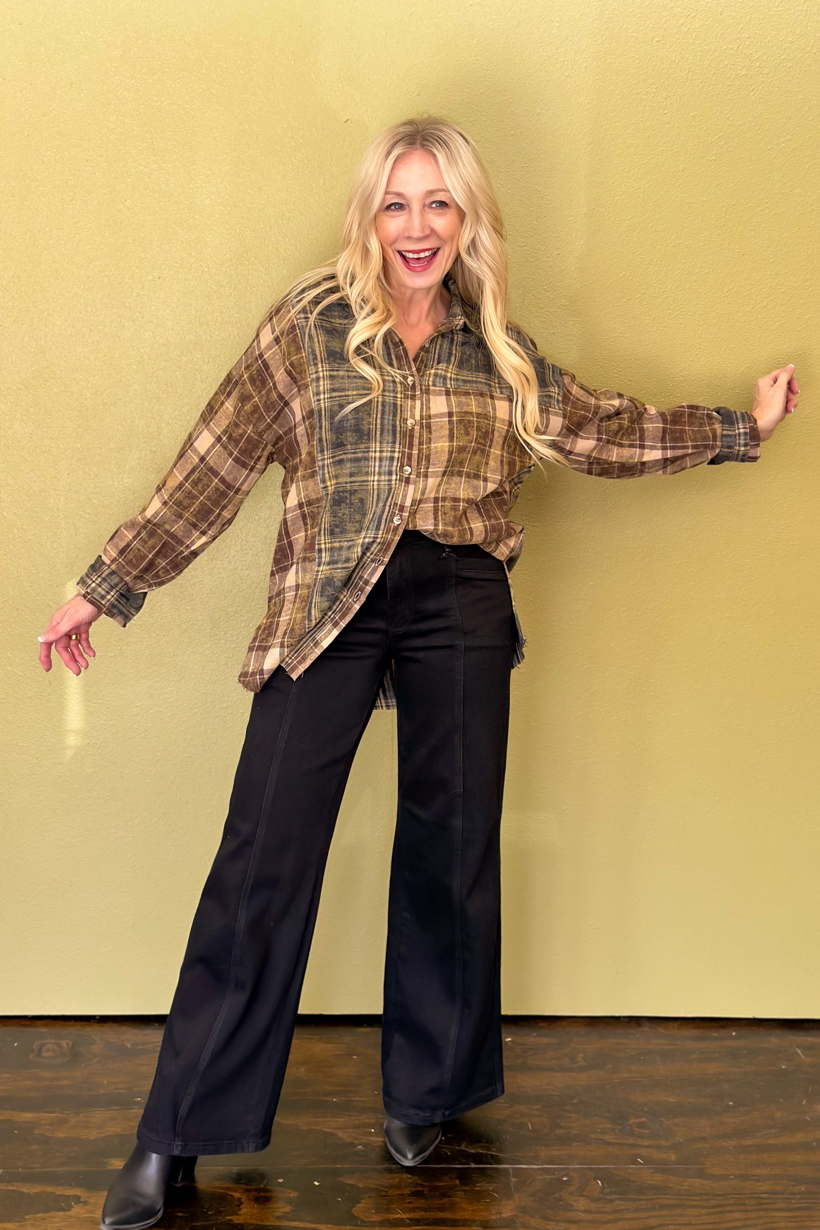 Step into timeless style with the retro wide leg jean in classic black. Featuring a flattering high waist, relaxed wide-leg silhouette, and just the right amount of stretch, these jeans offer vintage vibes with modern comfort. Pair them with anything from graphic tees to structured blazers for a look that’s effortlessly cool and endlessly versatile. Make this your work Jean and date night Jean!