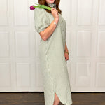 Fresh, timeless, and effortlessly flattering—this short sleeve green gingham midi dress is a warm-weather staple. The crisp gingham pattern adds a playful yet polished feel, while the midi length offers an easy, versatile silhouette that works from daytime outings to casual evenings. Style it with sandals for a casual look or dress it up with wedges and simple accessories for an elevated finish.