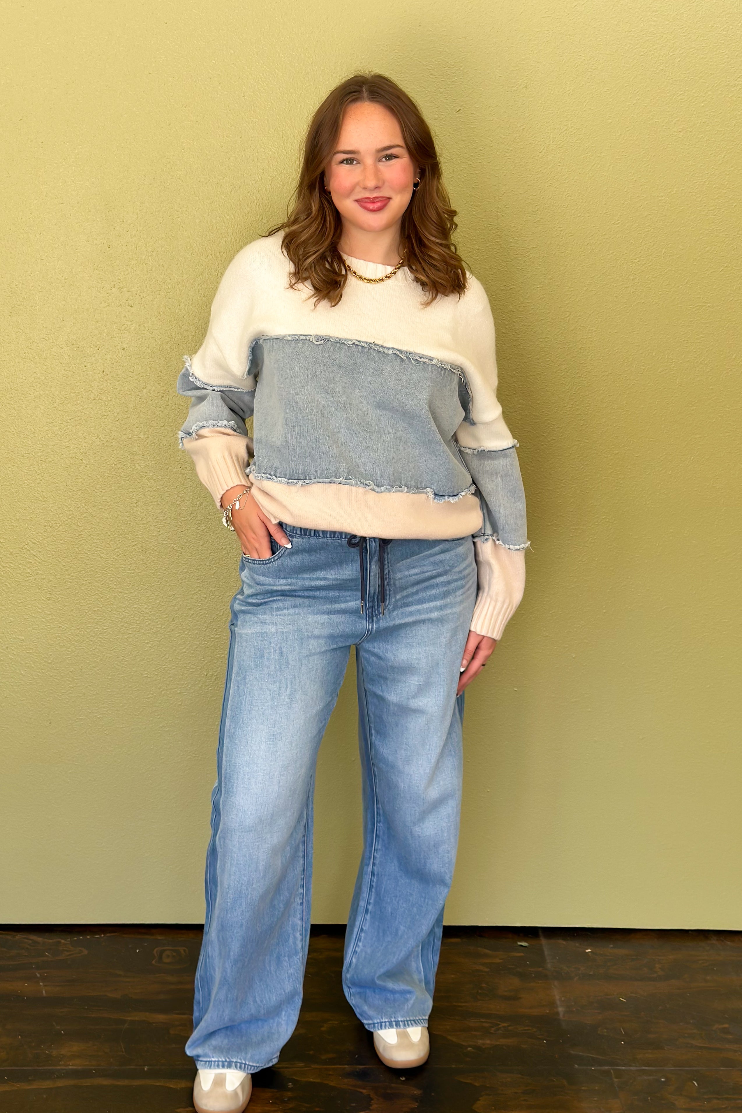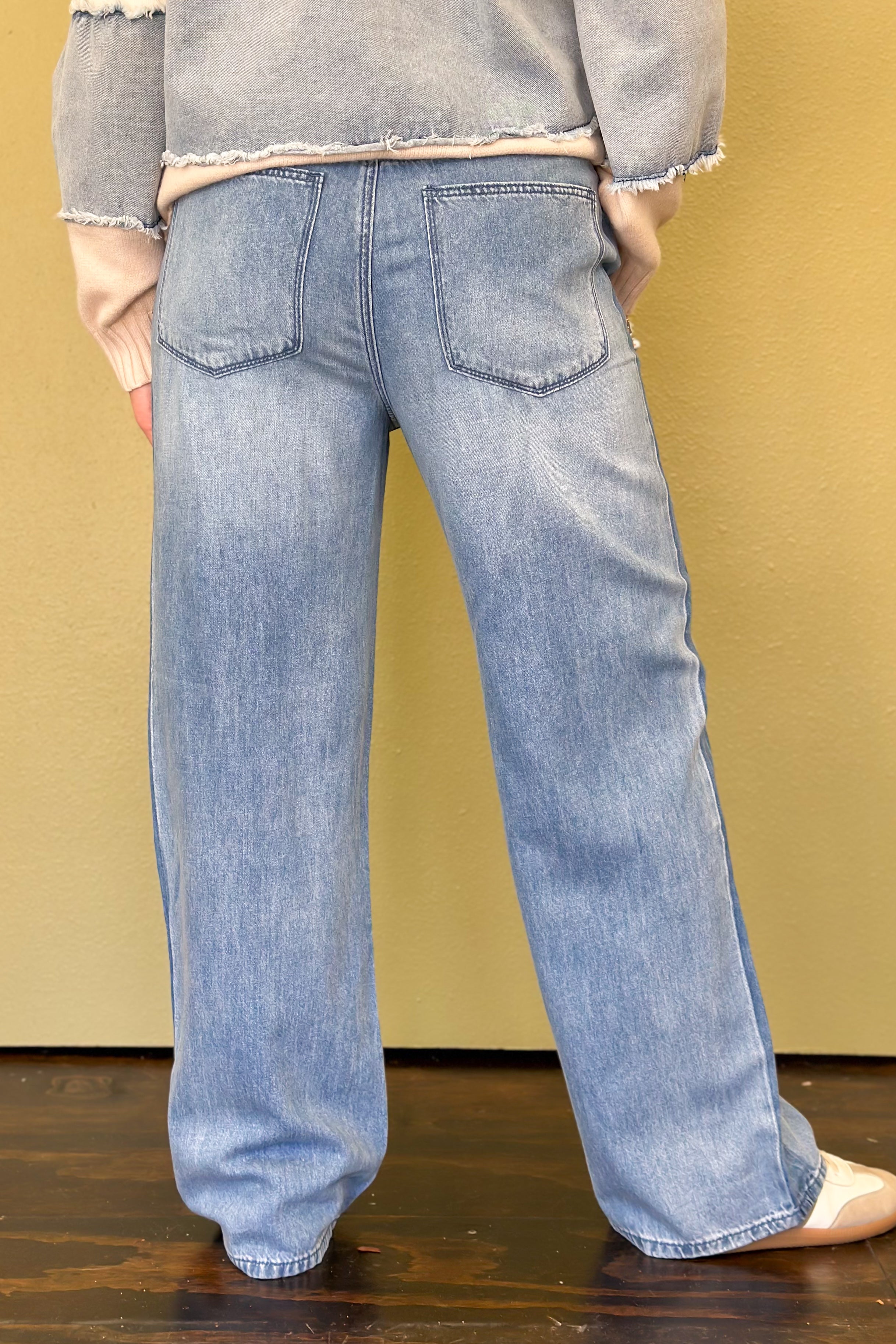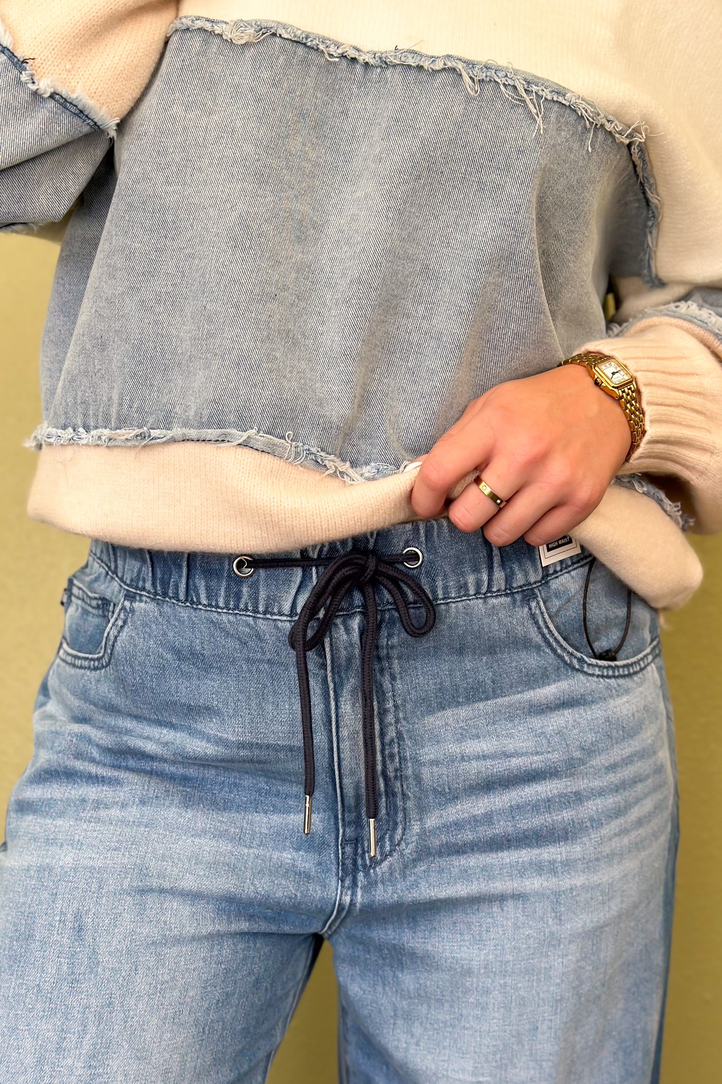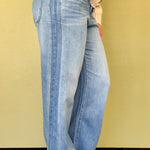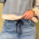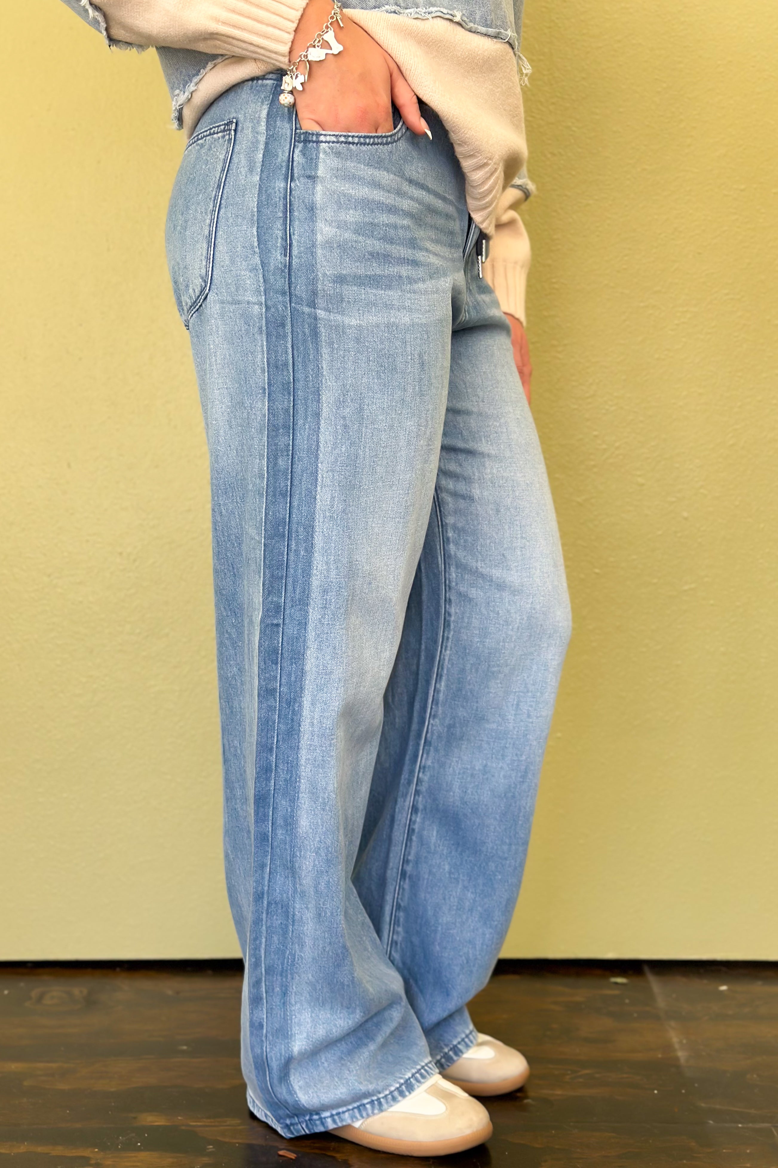 Ease into everyday style with the Side Stripe Slouch Jean — a relaxed, wide-leg denim made for movement and effortless edge. Designed with a soft elastic waistband, functional drawstring, and dark side stripe detail for a sporty twist, these jeans blend laid-back comfort with street-style cool. The midweight denim offers structure without stiffness, perfect for dressing up or down.