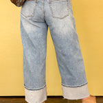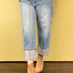 Welcome to the barrel Jean reinvented in this standout style. These mid wash high-rise barrel-leg jeans combine relaxed comfort finished with a cuffed hem for a modern, effortless look.