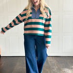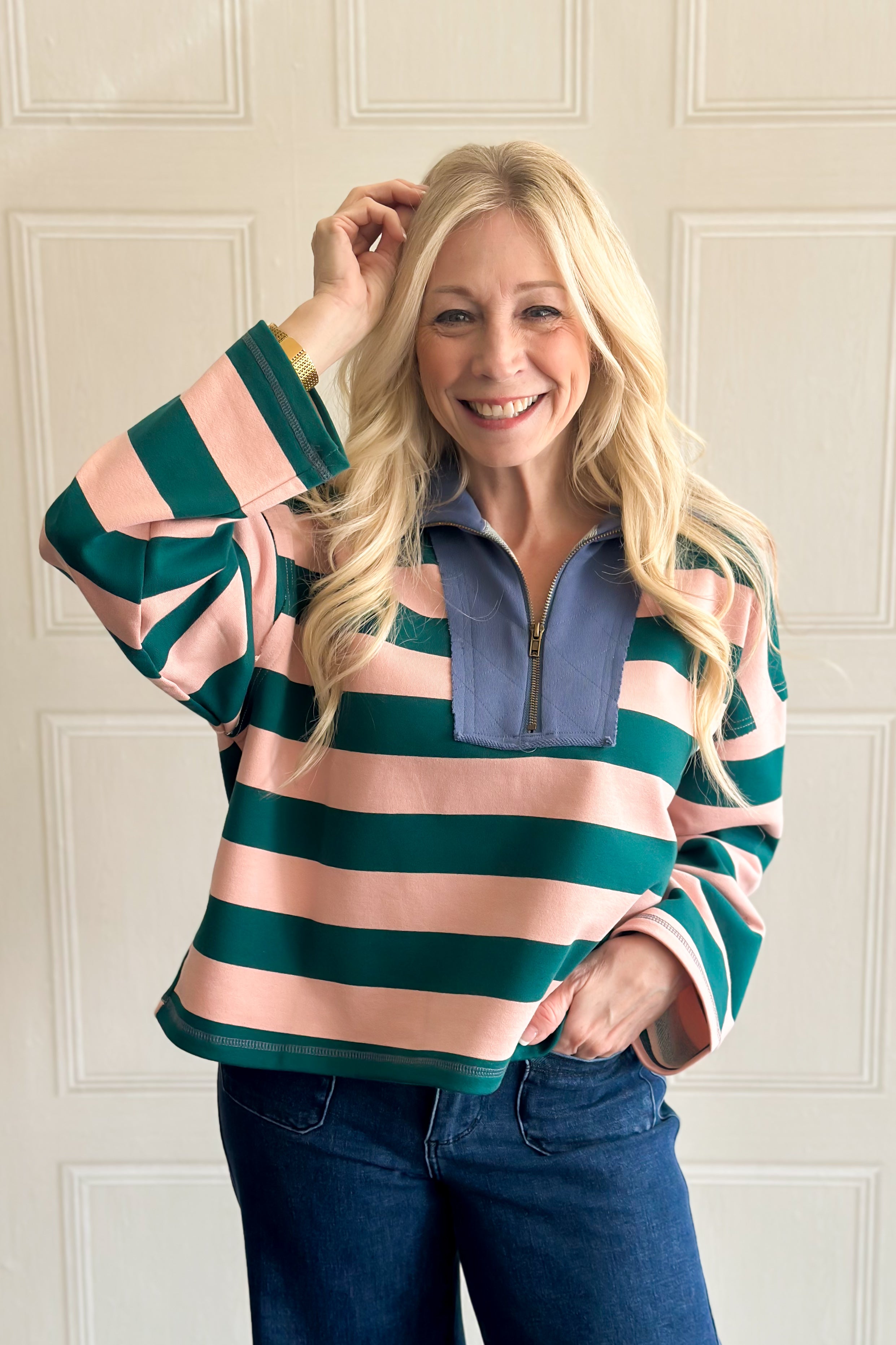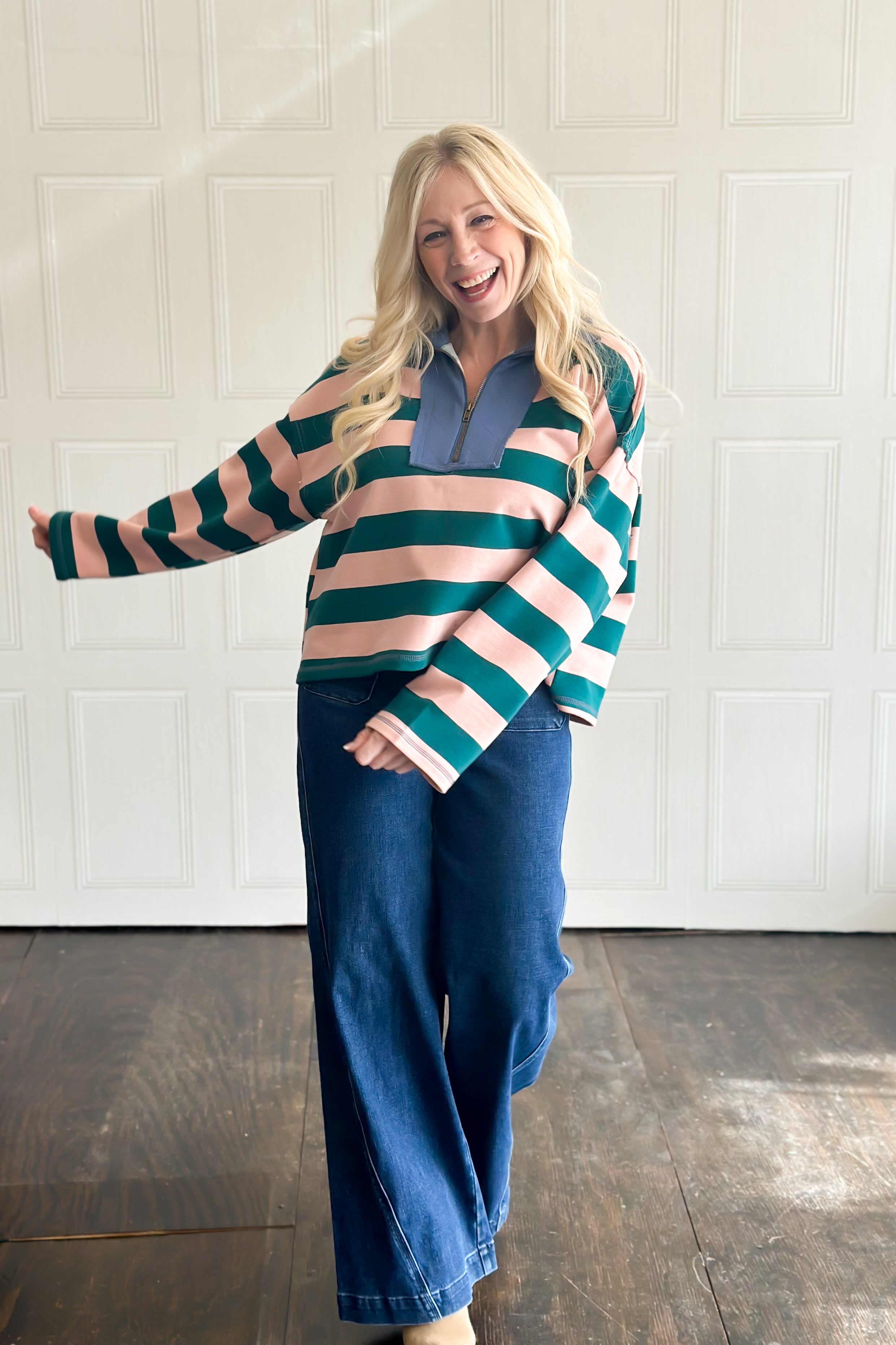 The Varsity Stripe Sweatshirt mets classic design with a trendy twist of a pop of color. With bold stripes and a contrasting collar, this sweatshirt adds a pop of style to your casual wardrobe with the quarter-zip fit. If comfort clothes are your go to, grab this soft, cozy sweatshirt for all-day wearability. Perfect for layering or wearing on its own, it's a go-to piece for effortlessly cool and comfortable looks.