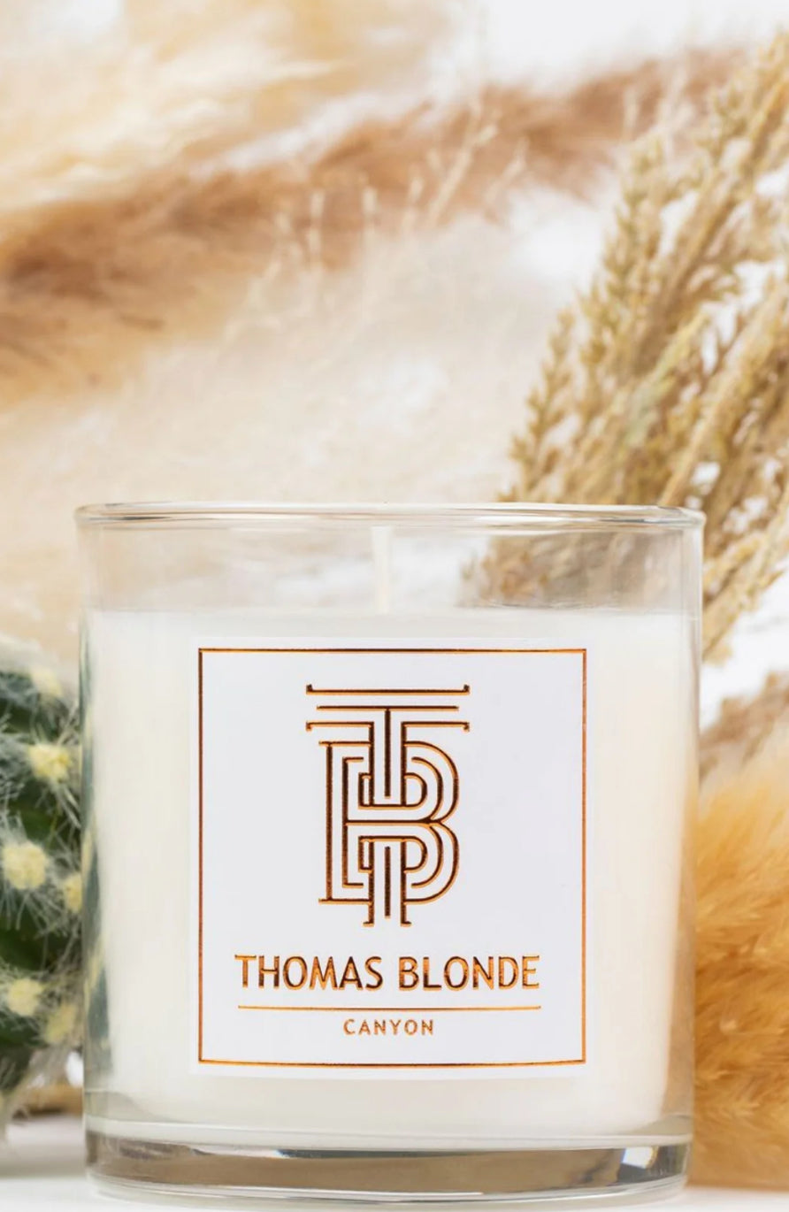 Luxury is the name of the game here at Thomas Blonde. Step into the depths of nature's grandeur with Canyon-a scent that awakens the explorer within. The bright zest of fresh bergamot cuts through the air, mingling with the robust aroma of towering heirloom mahogany trees. As the scent settles, soft musk undertones drift in like a cool canyon breeze, adding an alluring warmth to this intoxicating fragrance.