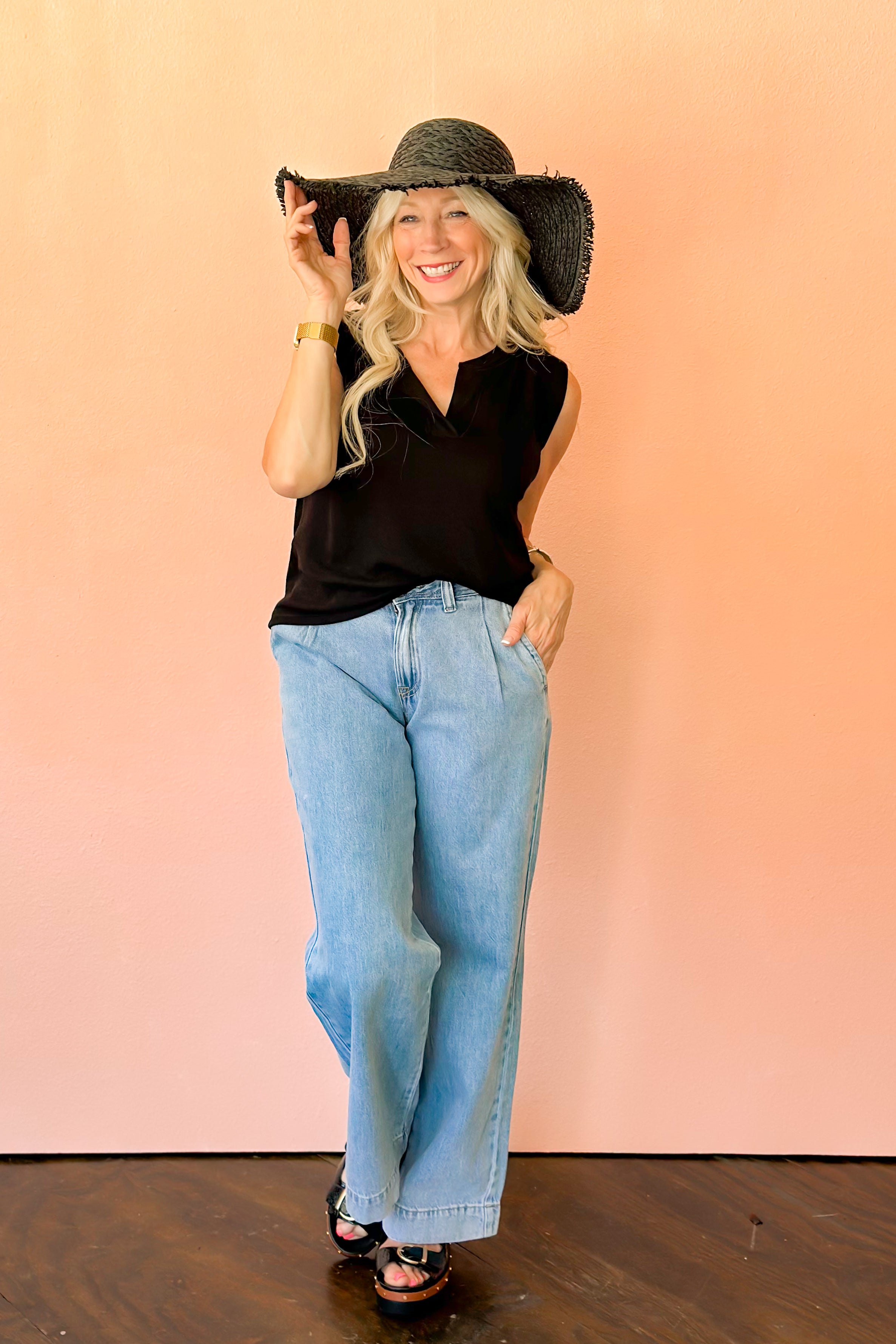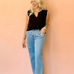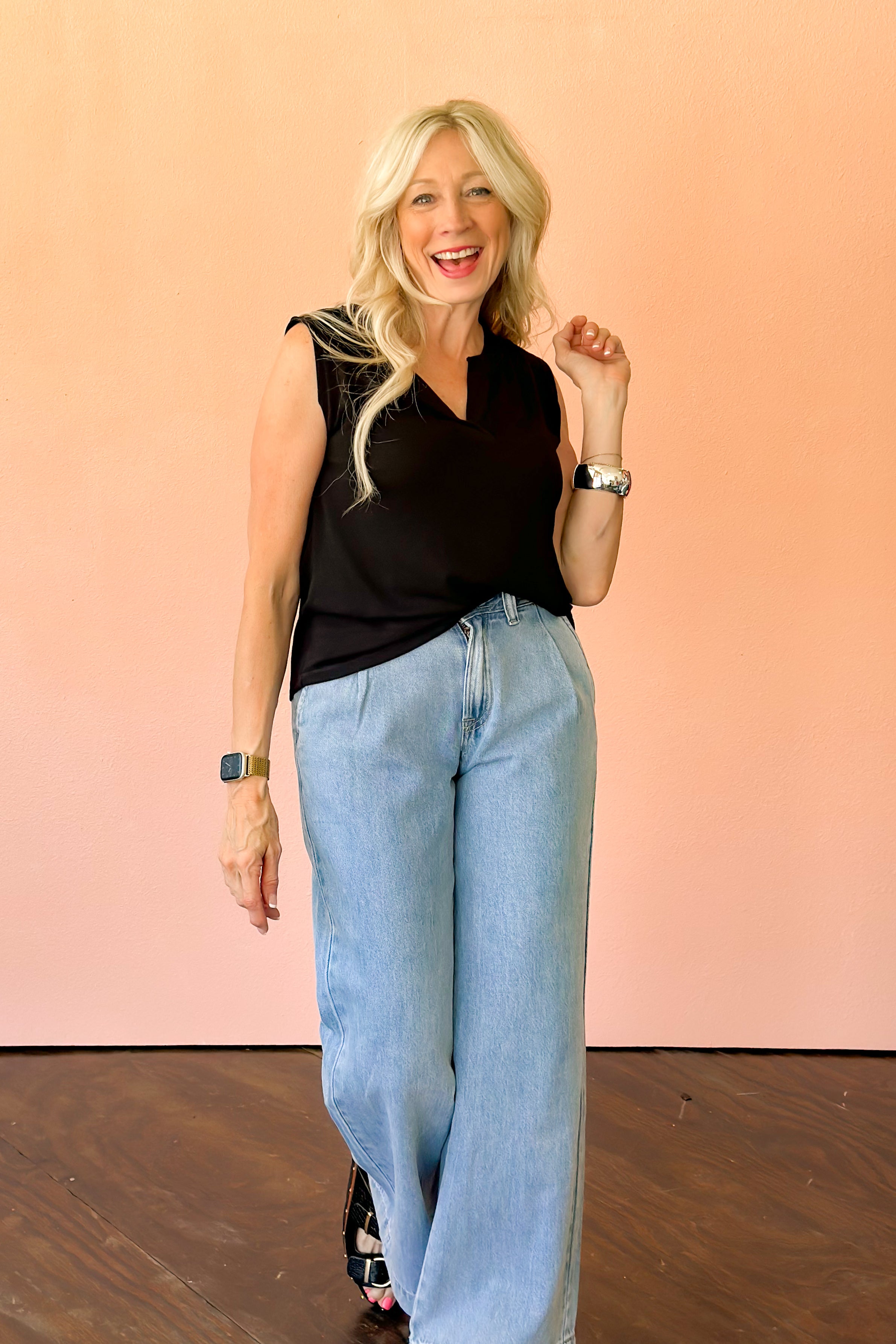 Easy does it with this knit sleeveless top. With the front notch, you can coordinate this top with your work blazer, skirts or denim. It is a versatile tank that will be wardrobe basic and favorite.