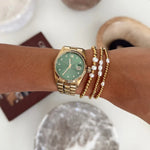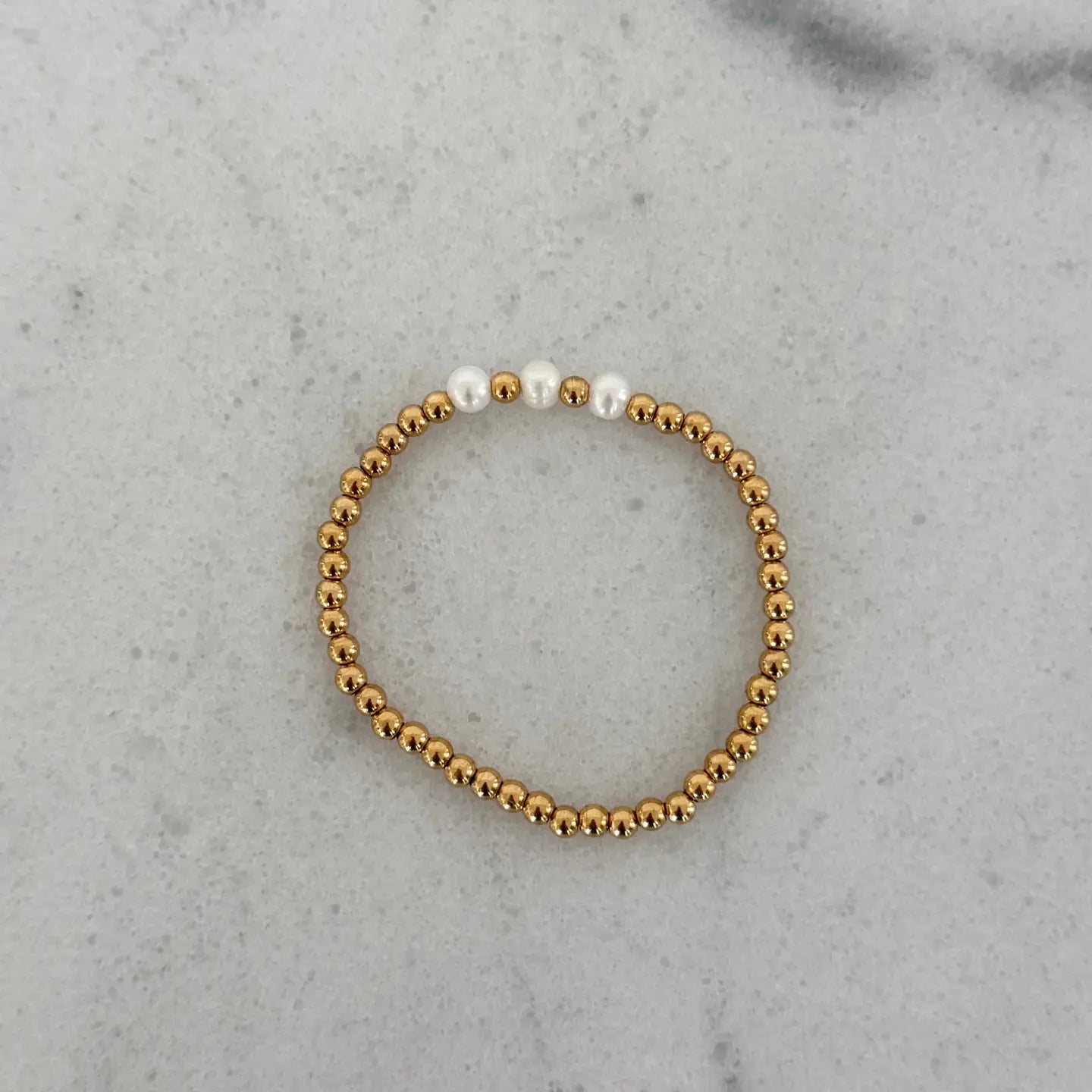 Simple, elegant, and effortlessly chic — this Gold Beaded Bracelet features a strand of polished gold beads accented with three dainty pearls, perfect for everyday wear or stacking with your favorite pieces. Look for more from our beaded collection to compliment your stack!