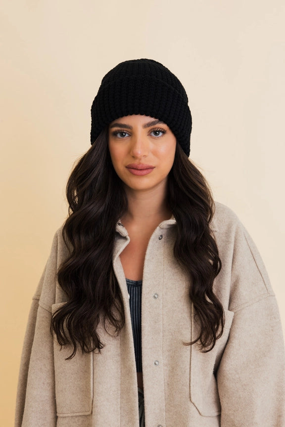 This cozy waffle knit beanie is a must-have for those chilly days. Featuring a stylish front fold detail and a classic folded cuff, this beanie adds both warmth and a modern touch to your wardrobe.