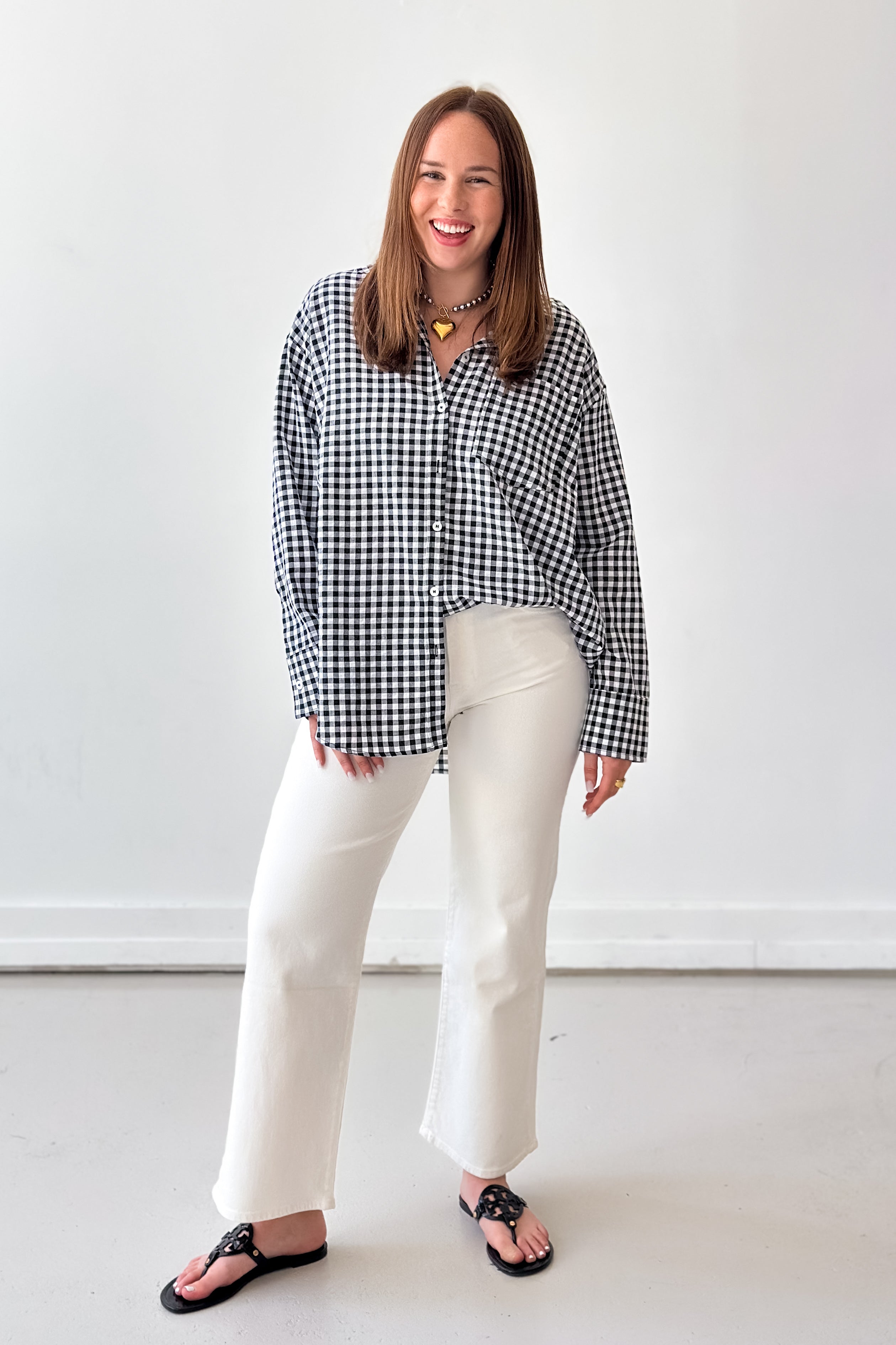Back by popular demand! Gingham is not only a classic print, but the button down relaxed shirt is a customer favorite. Featuring a chest patch pocket and button-front closure, this long sleeve shirt works as both a lightweight top and an easy spring to summer layer. Style it with denim shorts, jeans, or skirts for an effortless, everyday look.