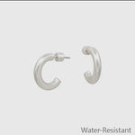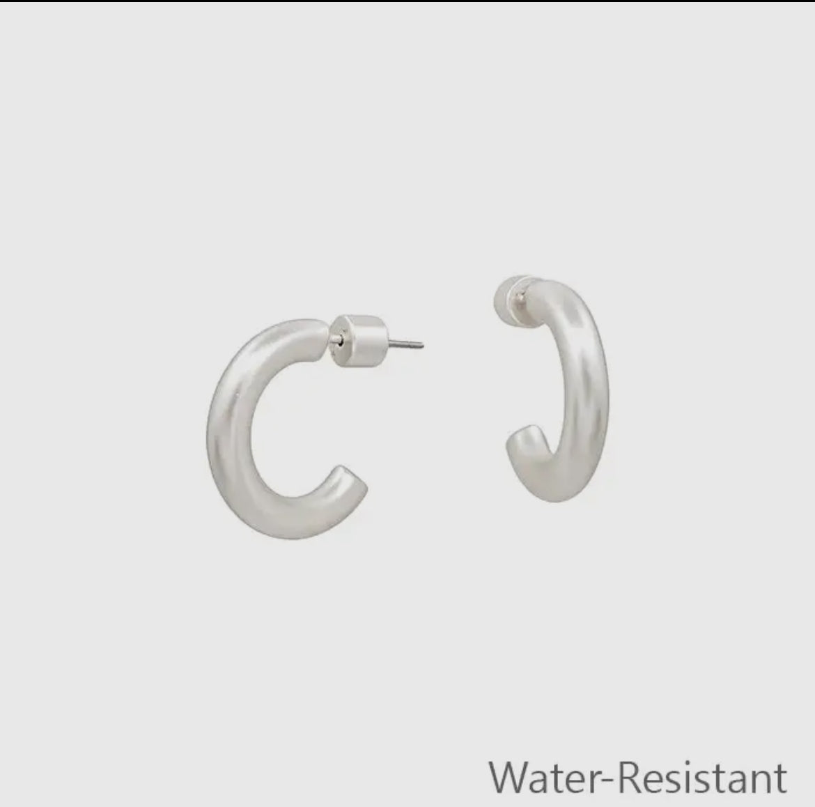 A timeless earring that blends elegance and simplicity. This hoop earring is designed with a matte silver finish, adding a touch of sophistication to any outfit. With its water-resistant feature, you can confidently wear it on any occasion, rain or shine.
